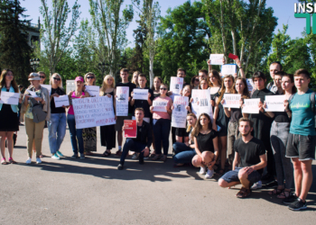 Сегодня, 2 июня, николаевские студенты Украинской академии лидерства показали на Соборной площади «красную карточку Кремлю» и потребовали освободить украинского режиссера ...