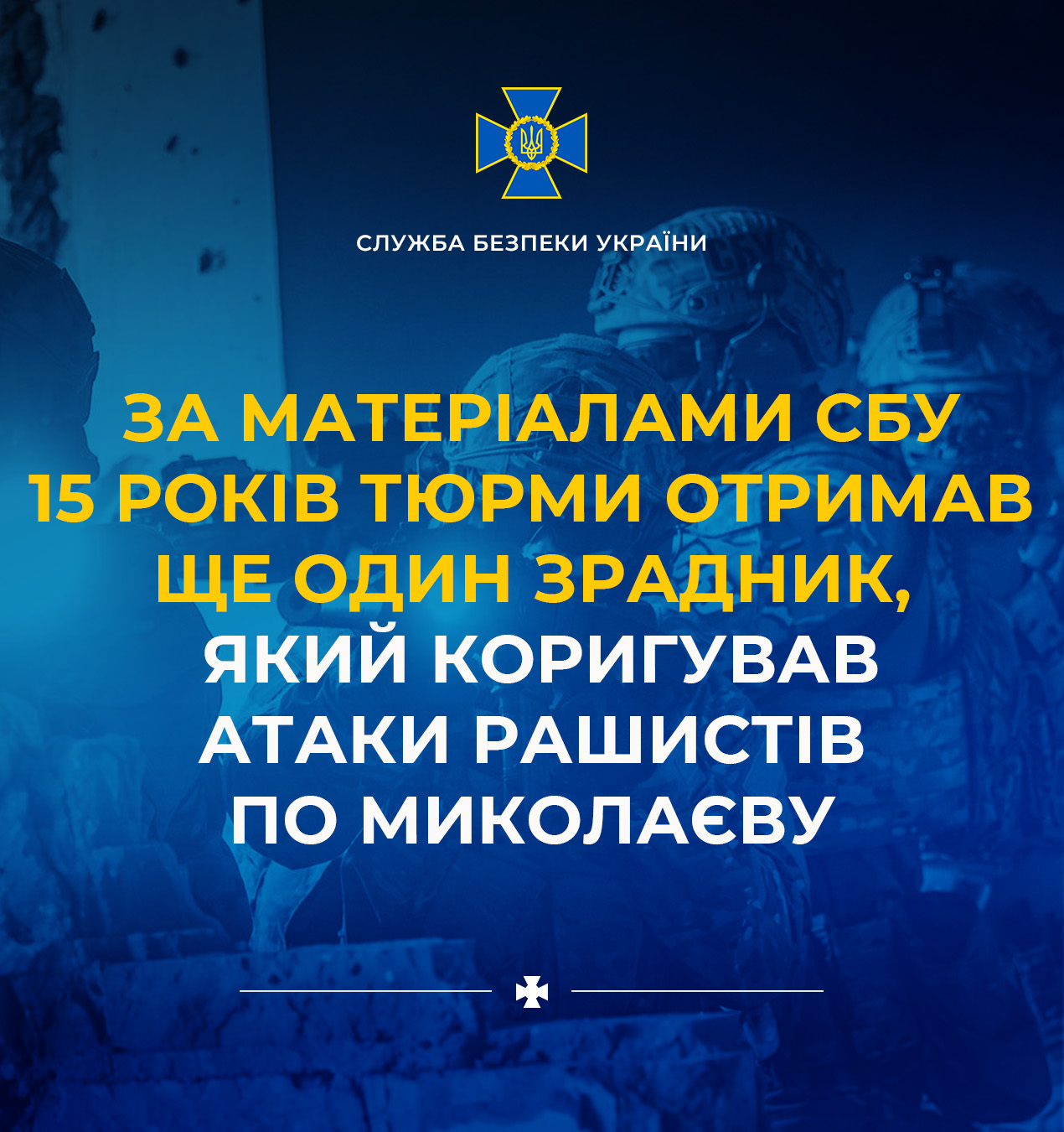 За доказовою базою Служби безпеки 15 років ув’язнення з конфіскацією майна отримав ще один російський агент, що діяв на Миколаївщині. Зловмисник коригував повітряні атаки рашистів по обласному центру.