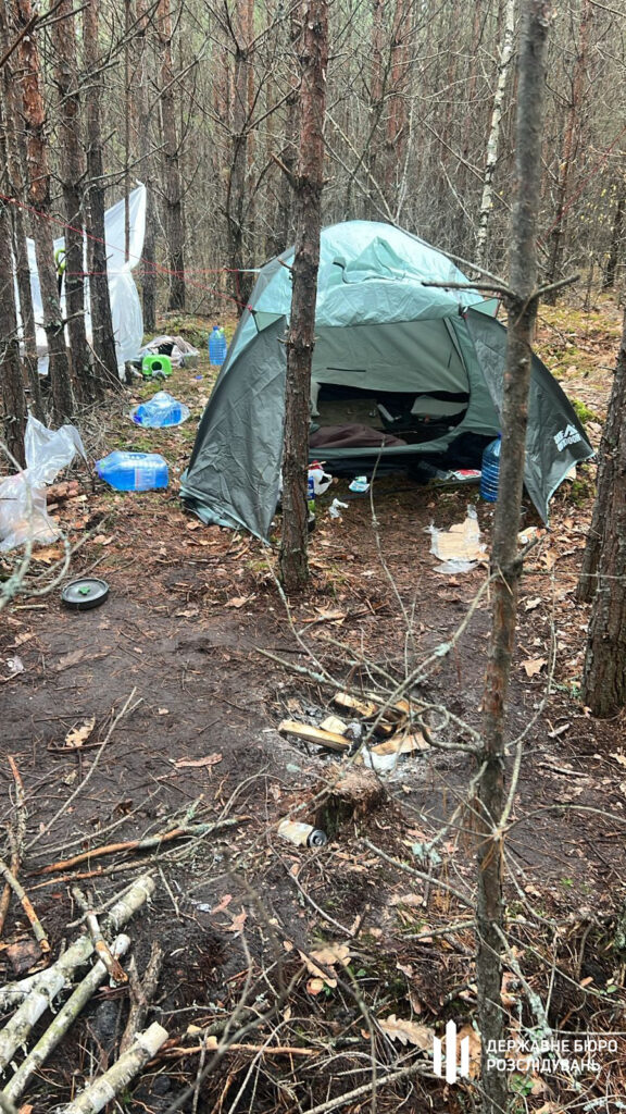 Через три дні – 6 листопада, працівники ДБР та поліції встановили місце перебування чоловіка — він переховувався у лісі на Рівненщині, де облаштував тимчасове житло. Для цього придбав мікроавтобус, намет, зарядну станцію, значну кількість харчів та різноманітне спорядження для тривалого перебування в лісі.