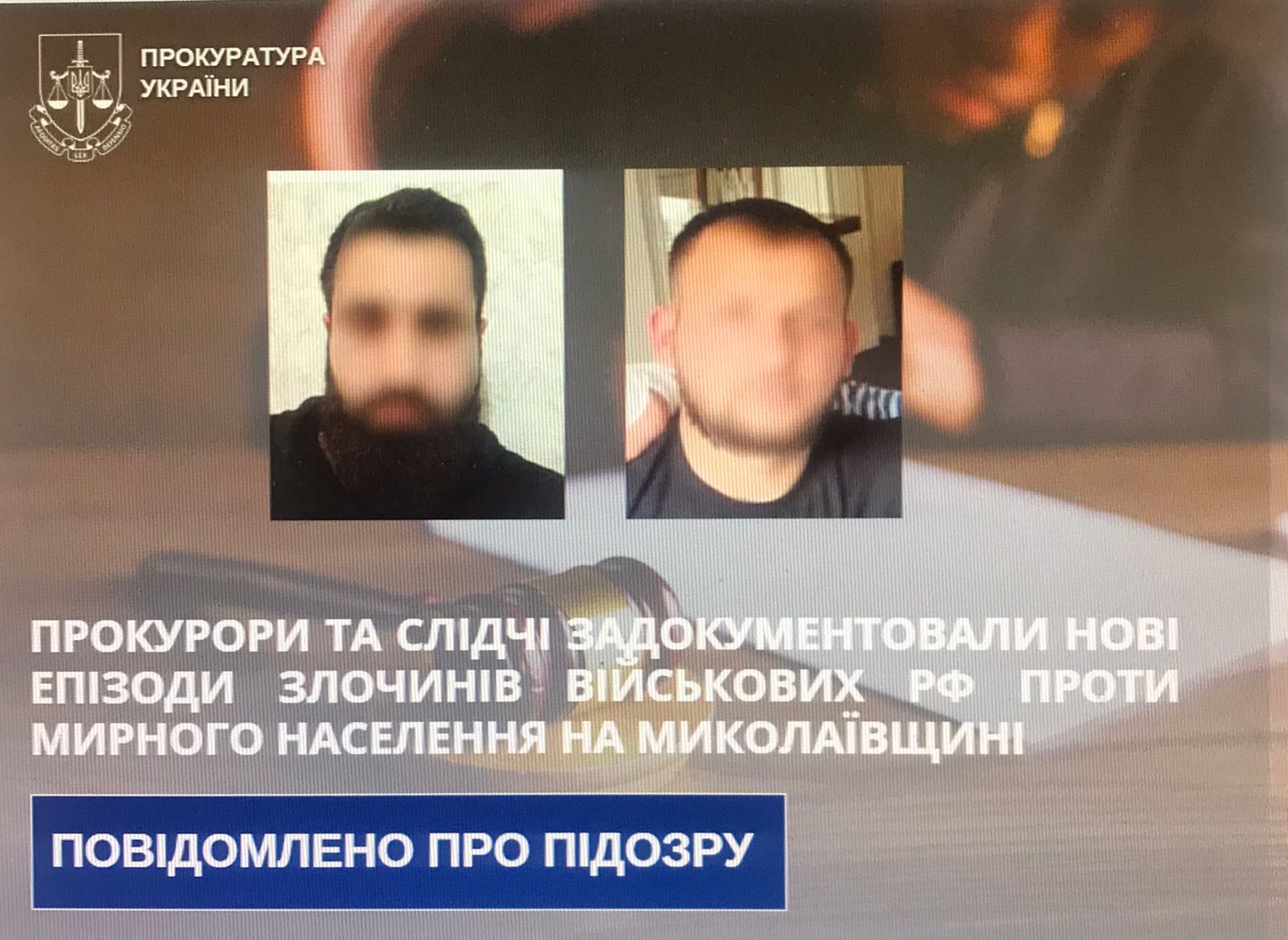 За процесуального керівництва Миколаївської обласної прокуратури задокументовано нові епізоди порушення законів та звичаїв війни двома військовослужбовцями зс рф, яким раніше вже повідомлялося про підозру за знущання над мирним населенням Снігурівської міської територіальної громади Баштанського району (ч. 2 ст. 28, ч. 1 ст. 438 КК України).