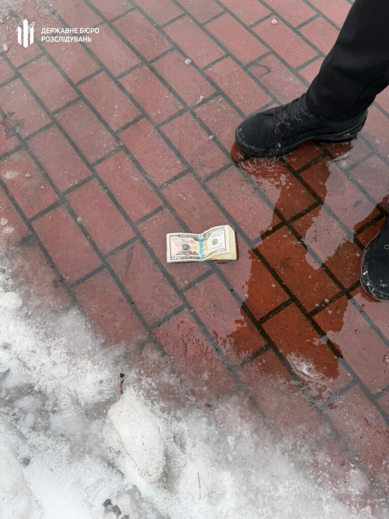 Під час передачі чергового траншу у сумі 5,5 тисяч доларів США працівники ДБР затримали співорганізатора — колишнього оперуповноваженого одного з районних управлінь столичної поліції — та посередника.