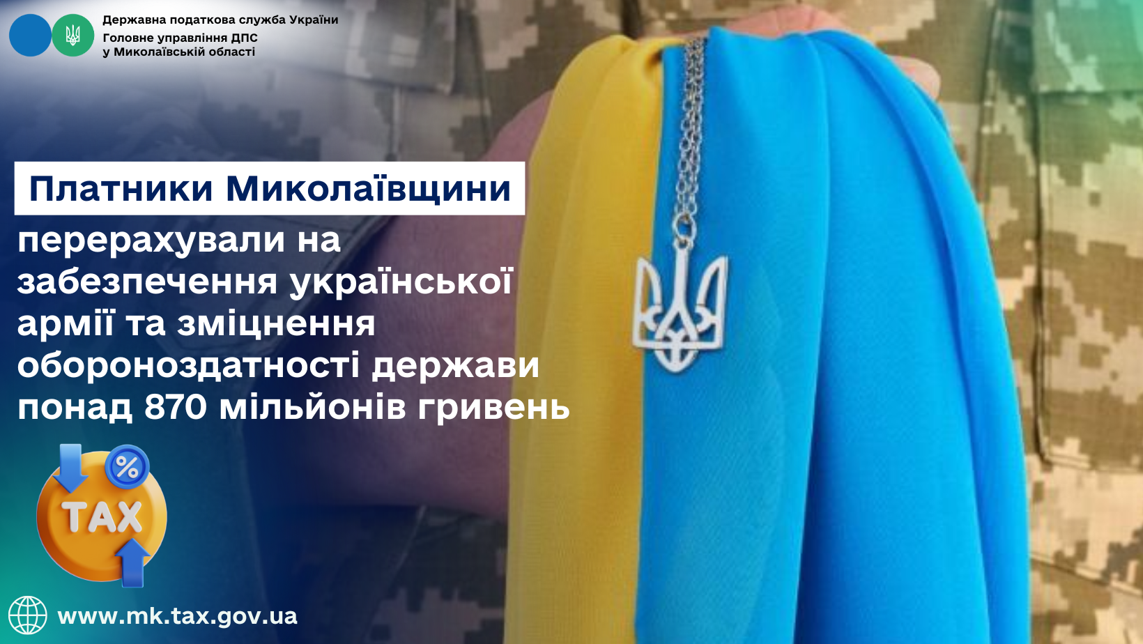 У Головному управлінні ДПС у Миколаївській області повідомляють, що платники податків Миколаївщини активно підтримують Збройні Сили України, сумлінно та прозоро сплачуючи військовий збір.