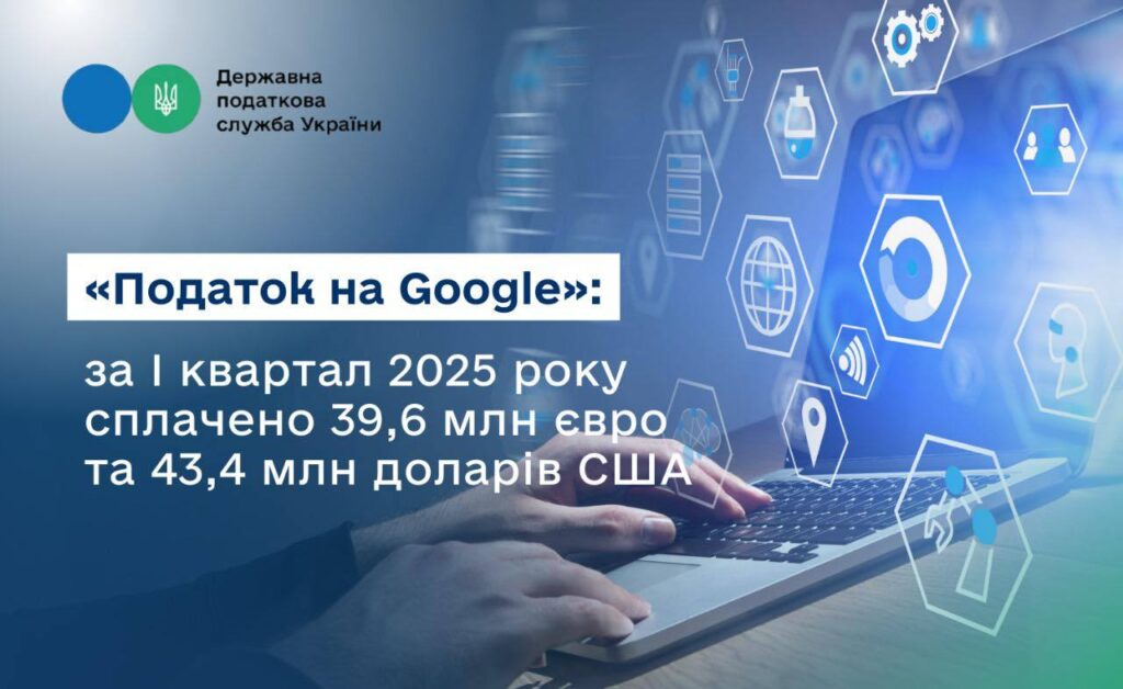 Податок на Google»: за І квартал 2025 року сплачено 39,6 млн євро та 43,4 млн доларів США