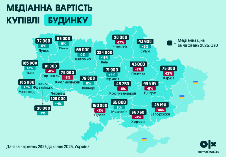 У червні 2025-го найдорожче коштували будинки у Києві, Львові, Ужгороді та Одесі, Чернівцях та Івано-Франківську.