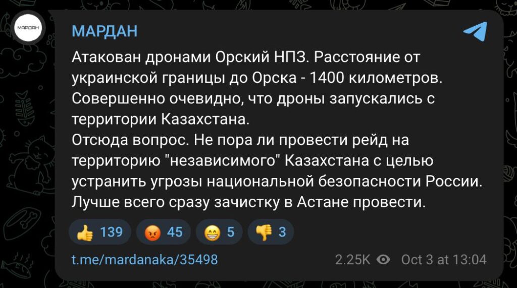 Атакований Орскнефтеоргсинтез, Оренбурзька область, це 1.500 км від Державного кордону України по прямій.