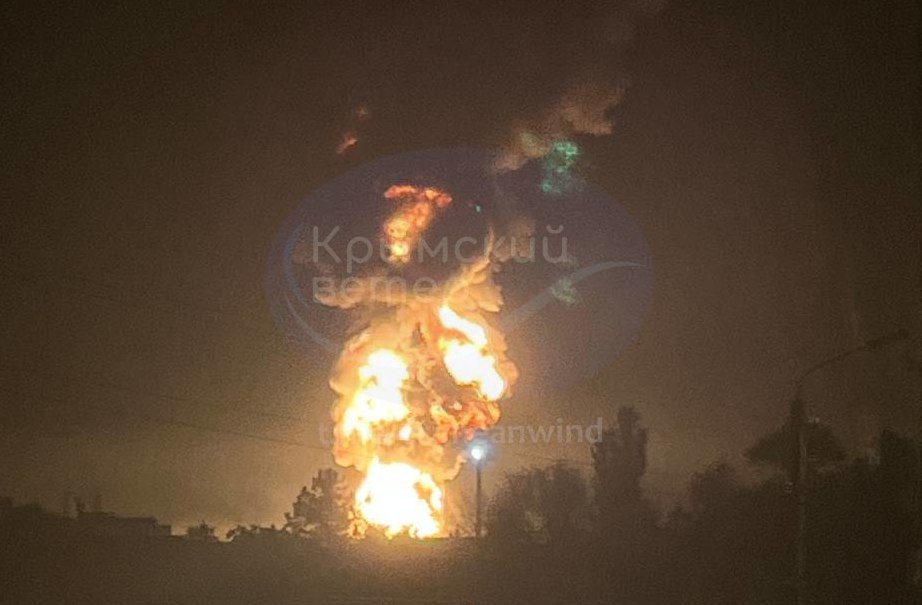 У Феодосії знову атакована нафтобаза. Місцеві пишут, що пожежа дуже масштабна, резервуари вибухають, вогонь підіймається на 50 метрів вгору.