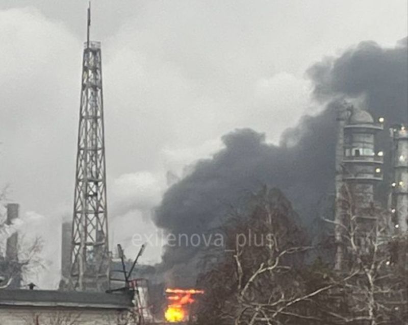 Попередньо, горить одна з установок первинної переробки нафти. Вогонь видно із різних районів міста.