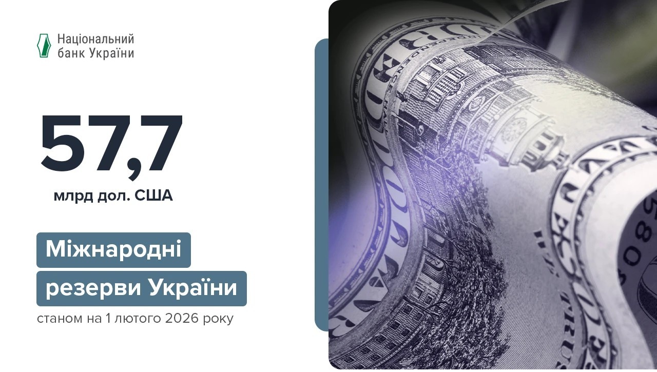 Міжнародні резерви України станом на 1 лютого 2026 року за попередніми даними зросли до 57 660,3 млн дол. США, оновивши історичний максимум.