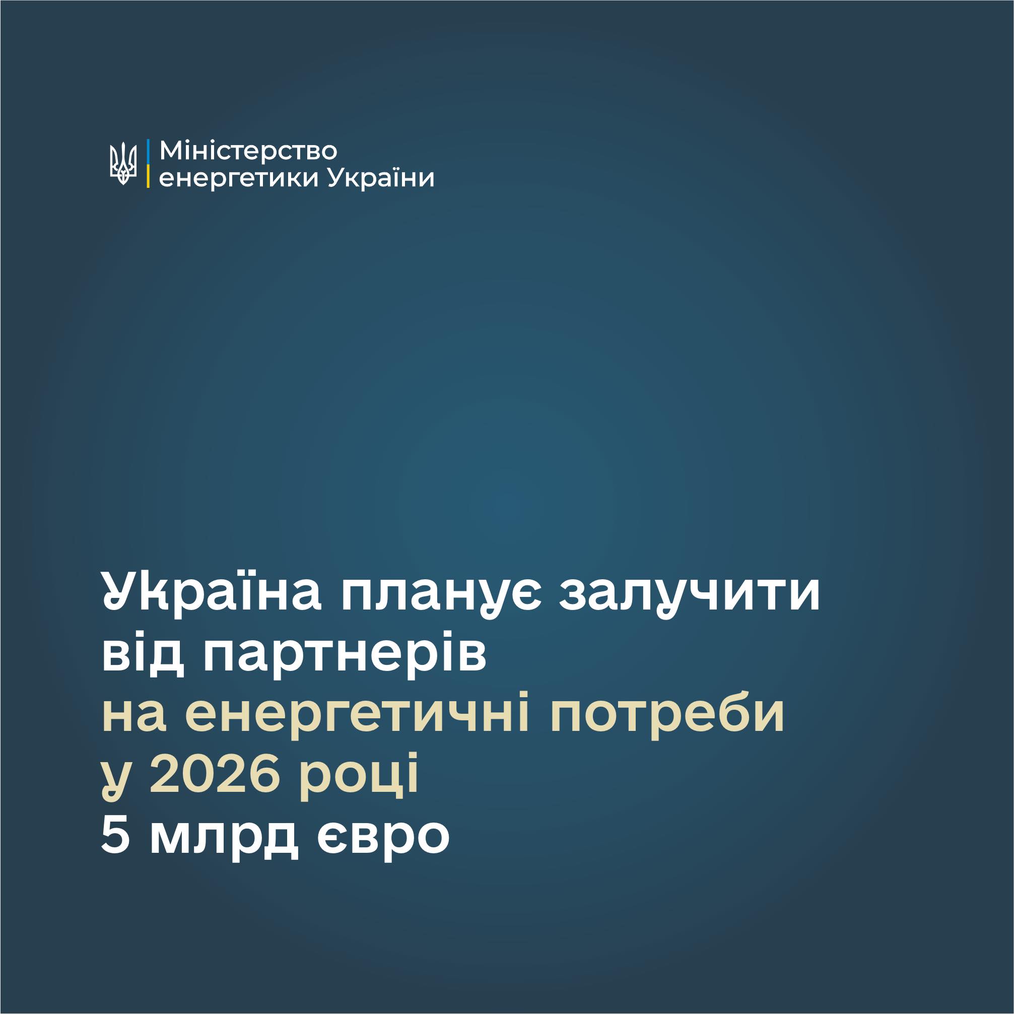 Україна планує залучити від партнерів на енергетичні потреби у 2026 році 5 млрд євро, – Денис Шмигаль