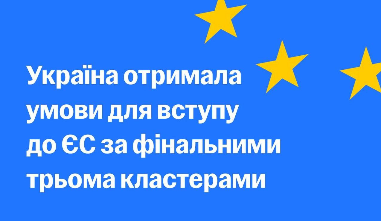 -Сьогодні українська делегація в Брюсселі отримала від Європейського Союзу умови для вступу за фінальними трьома переговорними кластерами.
