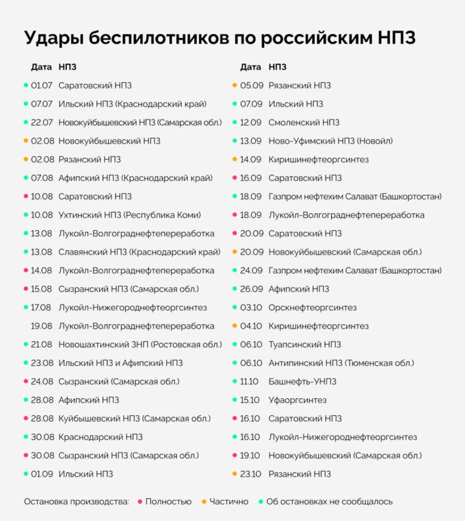 Вчора російське опозиційне видання «Агентство» опублікувало звіт, з якого випливає, що Україна з початку липня завдала 43 удари по російських НПЗ.