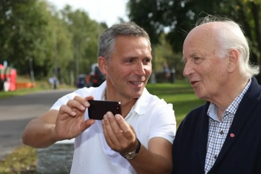 Єнс Столтенберг зі своїм батьком Торвальдом Столтенбергом, видатною фігурою в норвезькій політиці безпеки часів Холодної війни. Фото: Норвезька лейбористська партія/AP