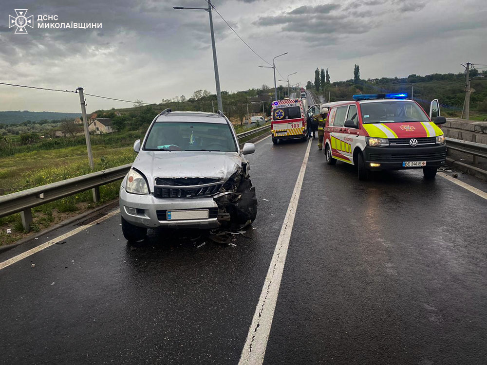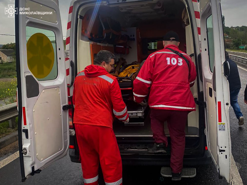 Як повідомили в ГУ ДСНС України у Миколаївській області, керманича транспортного засобу заблокувало понівеченими конструктивними елементами, тож його за допомогою спеціального обладнання дістали рятувальники та передали медикам. Обох постраждалих з місця госпіталізували до Вознесенської лікарні.