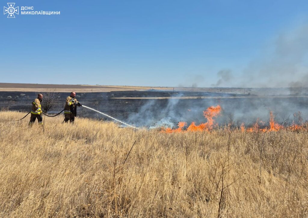 Опісля обіду на лінію «101» надійшло повідомлення про пожежу сухої трави та чагарників на відкритій території в мікрорайоні Тернівка м. Миколаєва.