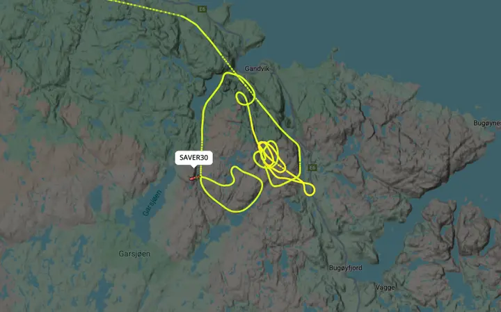 На фотографії показано рятувальний вертоліт, що кружляє в цьому районі. Фото: Скріншот: Flightradar