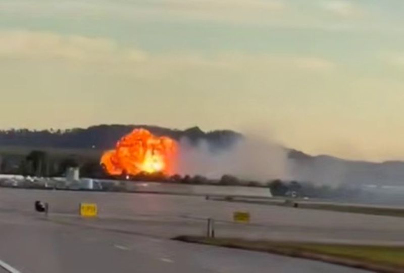 Літак злетів із головного хабу UPS — і вже за хвилини впав, охоплений полум’ям. Поруч із злітною смугою — масштабна пожежа, знищено кілька будівель.