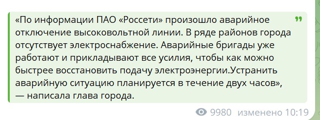 По попереднім даним, горить трансформатор на “Электрическая подстанция 110/35/6 кВ «Т-25»”