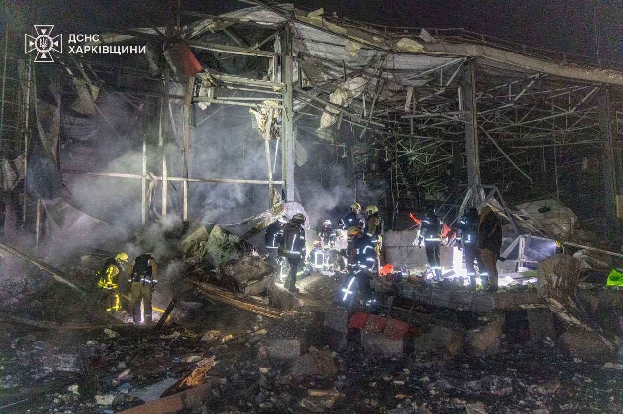 Сьогодні вночі росія завдала масованого удару по території поштового терміналу у передмісті Харкова. Сталися руйнації будівель та декілька осередків займання на загальній площі біля 500 м.кв.