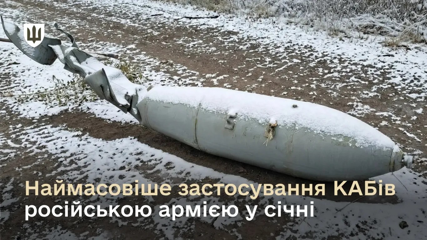 У січні 2026 року зафіксовано найбільшу кількість скинутих російською авіацією на позиції Сил оборони України та прифронтові населені пункти КАБів – понад 5 700. Попередній максимум було зафіксовано у жовтні 2025 року, коли ворог застосував понад 5 300 КАБів.