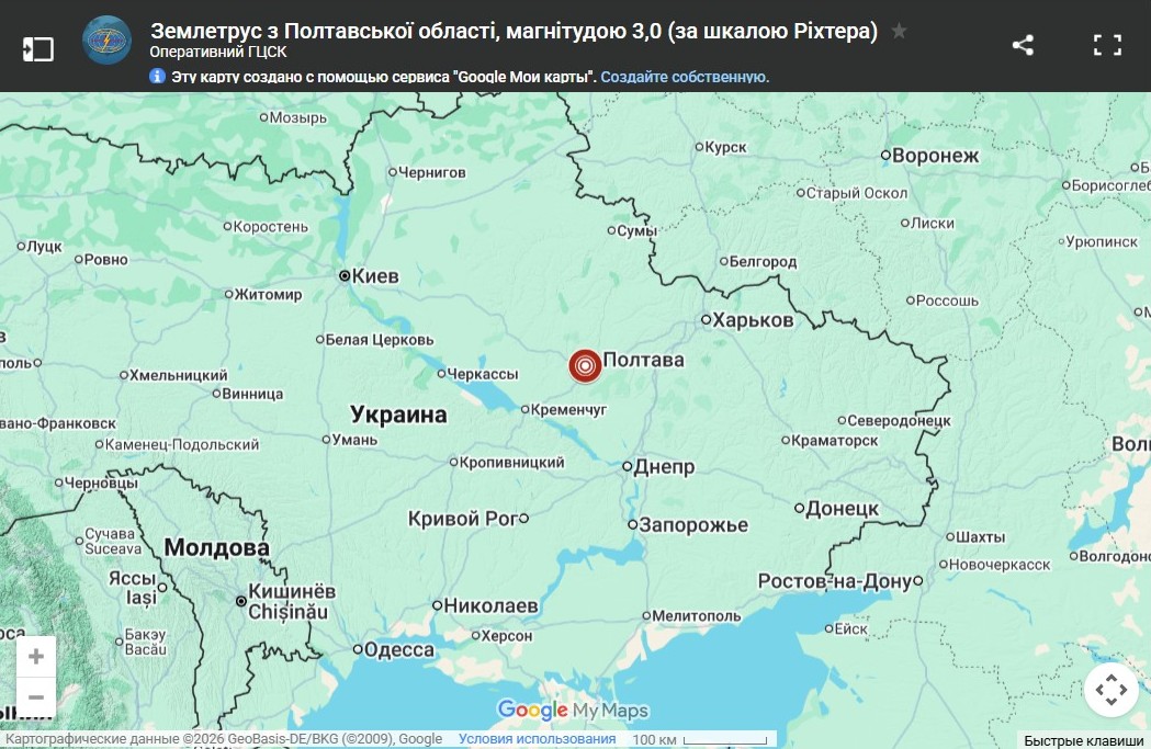 6 та 8 лютого 2026 року Головним центром спеціального контролю зареєстровано землетруси в Полтавському районі Полтавської області.