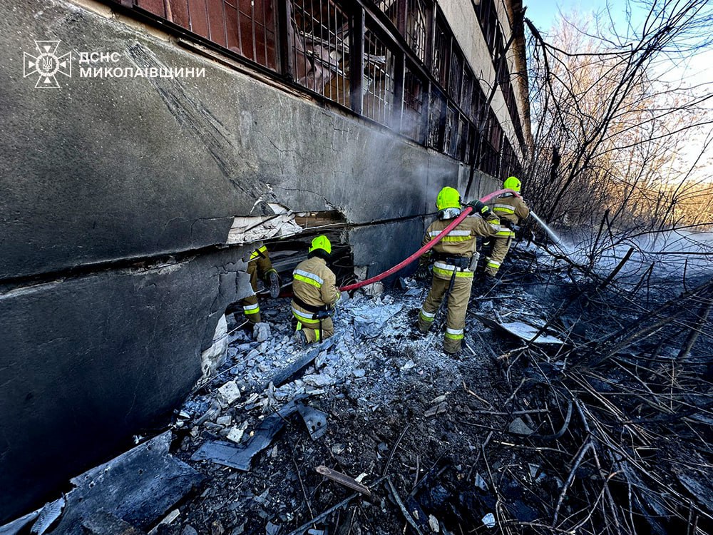 22 лютого під час атаки шахедів на Миколаїв, внаслідок падіння уламків одного з них виникла пожежа покрівлі не експлуатованої складської будівлі та сміття на відритій території поблизу.