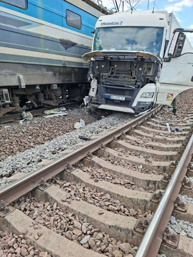 Вантажний автомобіль на Львівщині «не помітив» справної звукової та світлової сигналізації і зустрівся з локомотивом поїзда №64 Перемишль — Київ.