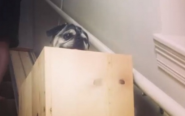 Впрочем, ездить на самодельном лифте понравилось и молодому 4-летнему мопсу Эмери.