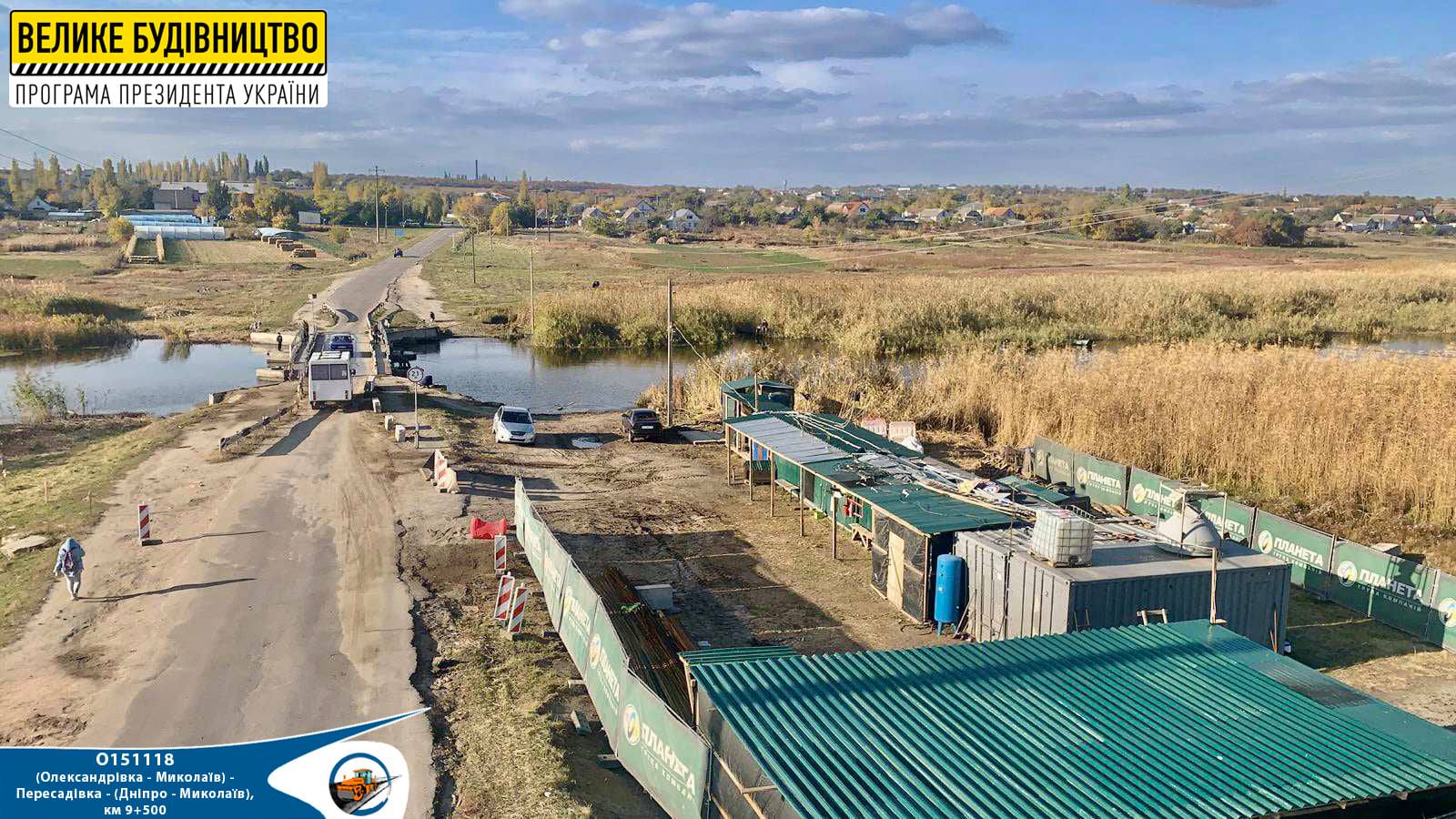 На участке автомобильной дороги общего пользования местного значения О151118 (Александровка-Николаев)-Пересадовка-(Днепр-Николаев), км 9 + 500 начат комплекс подготовительных работ в рамках строительства нового моста на месте многострадальной понтонной переправы.