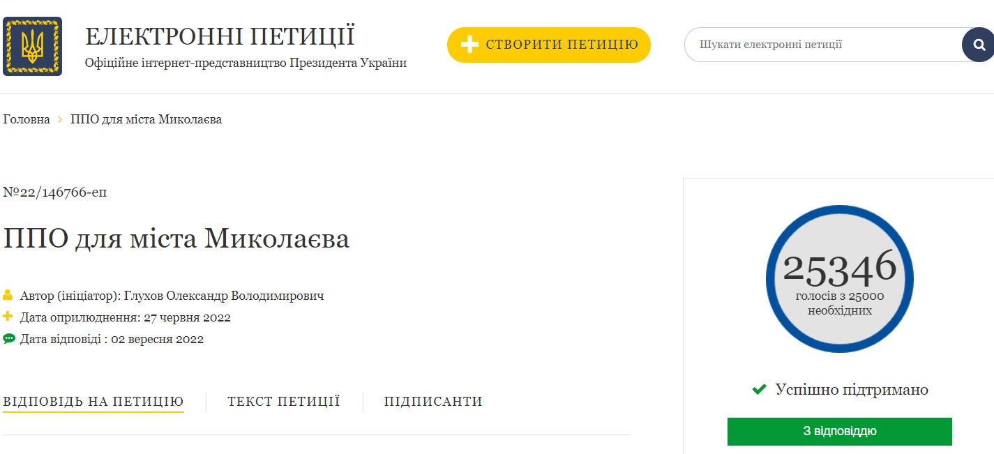 Як повідомляло Інше ТВ, Петиція Зеленському про ППО для Миколаєва набрала необхідну кількість голосів.