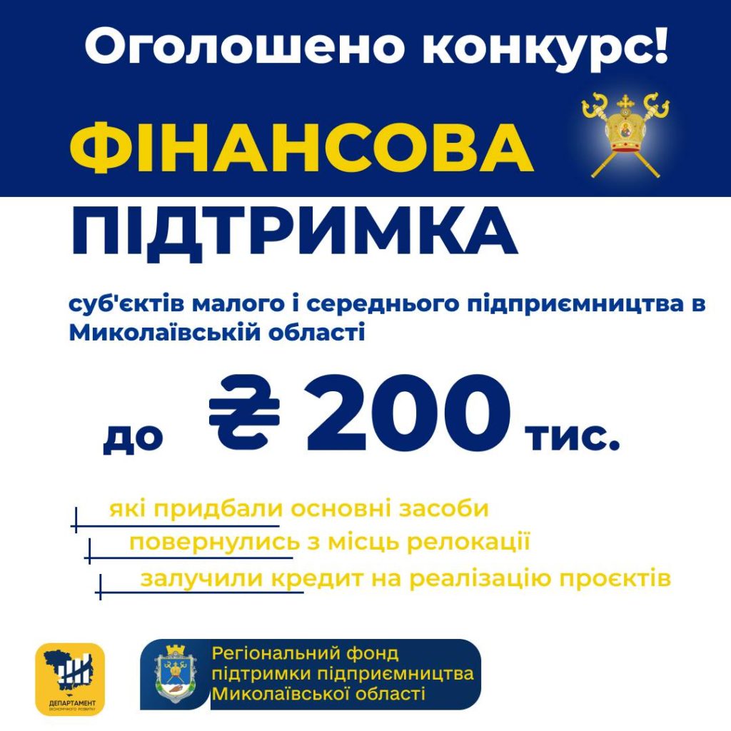 За ініціативи Миколаївської обласної військової адміністрації спільно з Регіональним фондом підтримки підприємництва у Миколаївській області оголошено конкурс серед підприємців Миколаївської області на отримання фінансової підтримки.