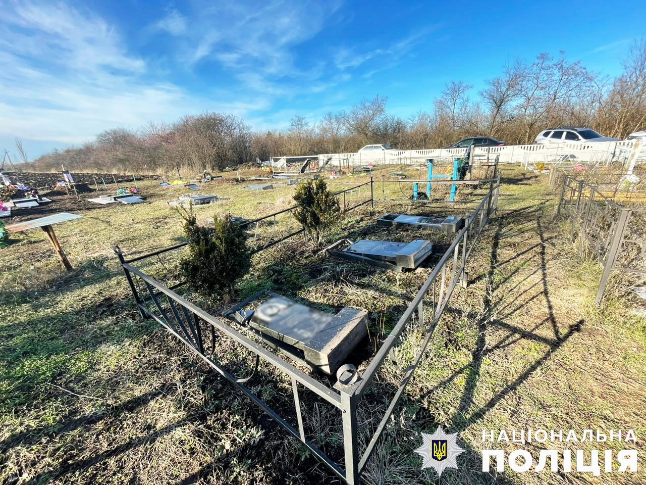 Повідомлення про те, що у с. Великолександрівка Казанківської громади невідомі пошкодили могили на місцевому кладовищі, надійшло до відділення поліції №1 Баштанського районного управління надійшло сьогодні, 26 грудня, від місцевих мешканців.