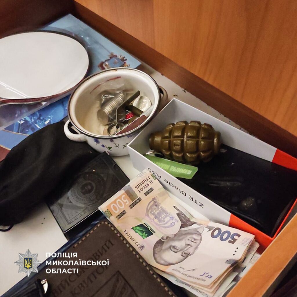 За місцем мешкання миколаївця правоохоронці вилучили ще близько 200 грамів мефедрону, 180 г Aльфа-PVP, 20 г канабісу, електронні ваги, порожні zip-пакетики для фасування, а також гранату та запал до неї.