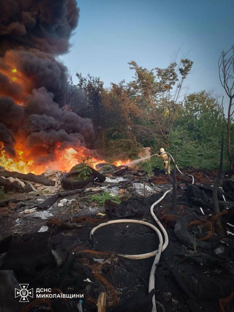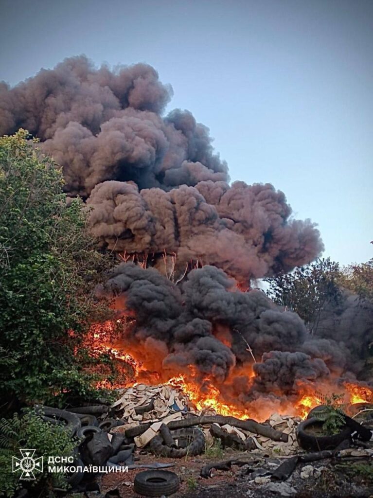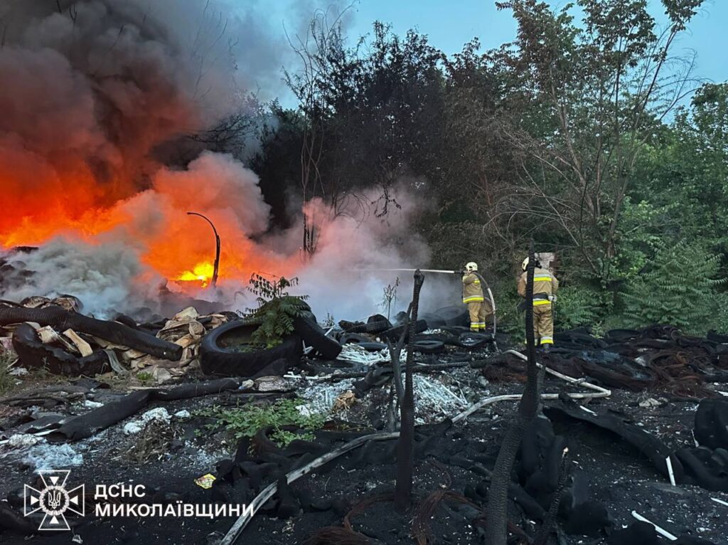 У Корабельному районі Миколаєва вогнеборці гасять пожежу шин та сухостою на відкритій території площею 100 кв. м.