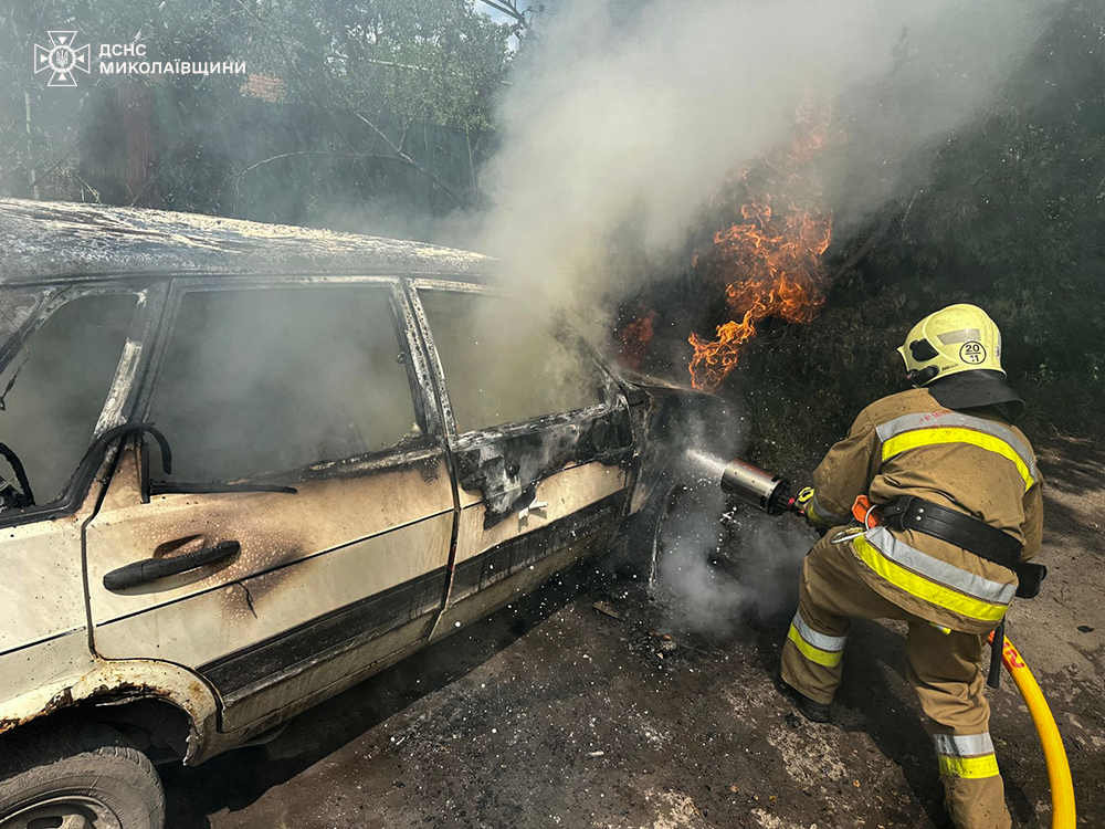 Також зареєстровано пожежу легкового автомобіля ВАЗ 21099. Подія сталась у с. Новий Буг Баштанського району. Пожежу ліквідували на площі 20 кв. м.