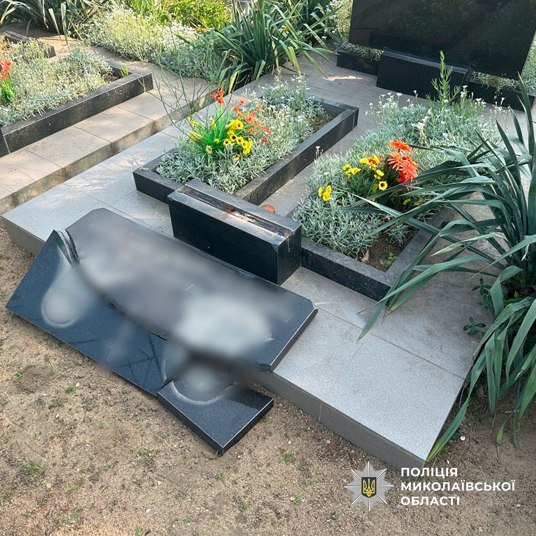 Повідомленням про те, що у м. Вознесенську на місцевому кладовищі понівечили низку могил, до поліції надійшло 2 червня.