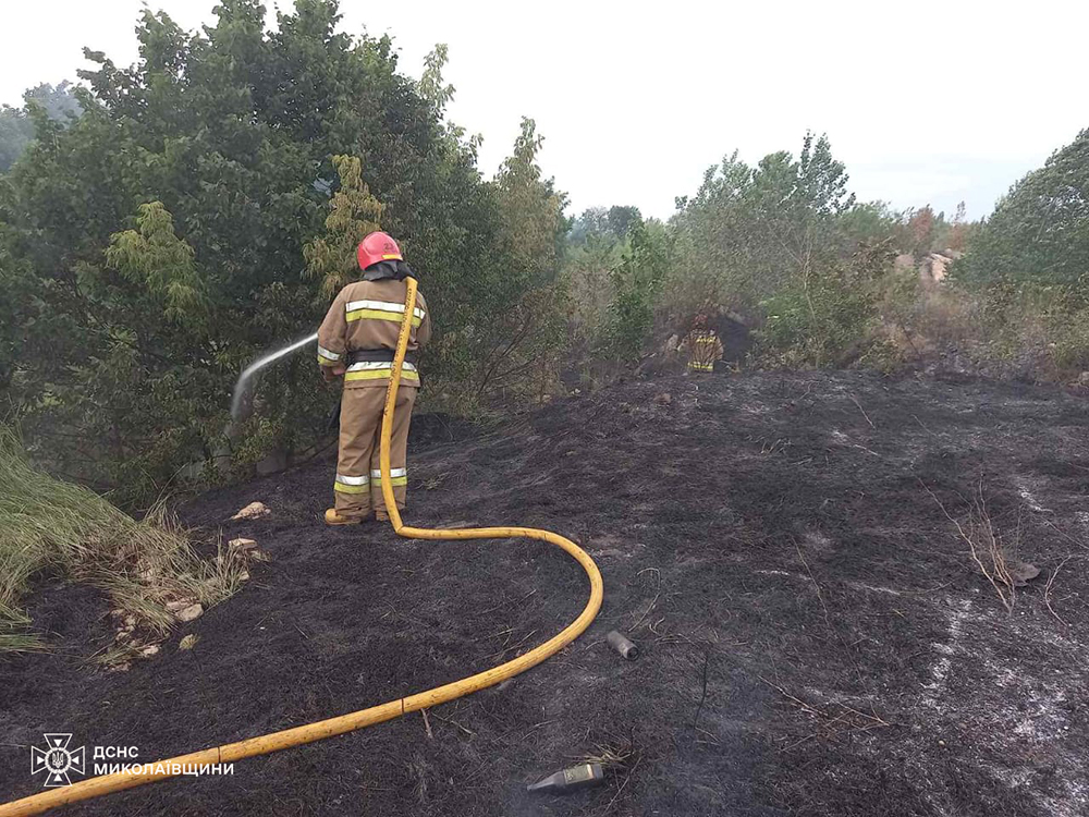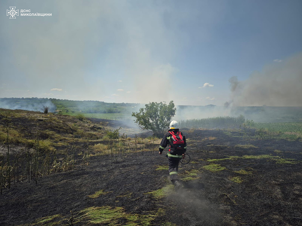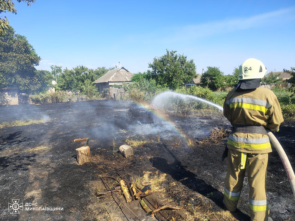 Інші 20 епізодів — горіння сухостоїв та чагарників, які виникали в кожному районі області. Серед них одна пожежа пшениці на корені на присадибній ділянці у с. Лідіївка Мостівської громади Вознесенського району. Вогнем знищено 1 га майбутнього врожаю. Загальна площа всіх горінь склала майже 16 га.