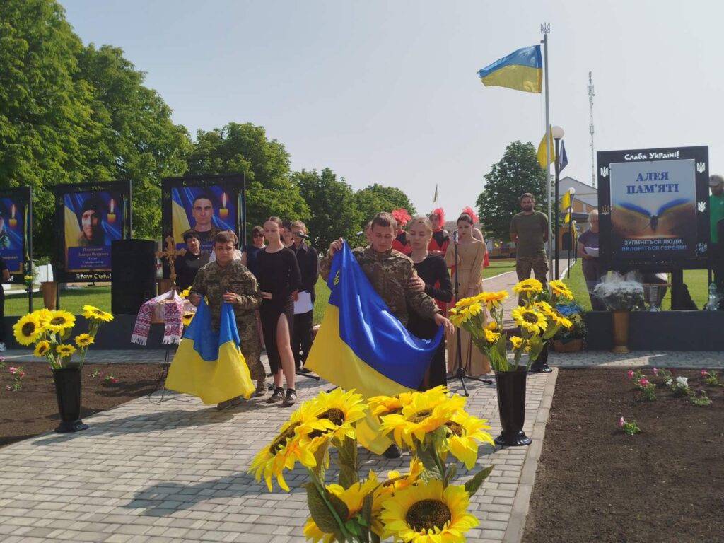 Банери зі світлинами Героїв встановили у центрі села. Територію поруч з Алеєю й навкруги неї впорядкували, повідомив Павло Москальов.