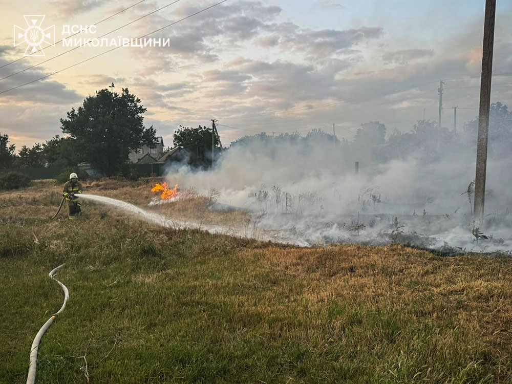 Інші 16 пожеж — горіння сухої трави, сміття, чагарників, пшениці на корені та лісосмуги. Вони зареєстровані у с. Квітневе та с. Засілля Первомайської громади, на території садових товариств «Металург» та «Скіф» Галицинівської громади, с. Баловне Костянтинівської громади, с. Троїцьке Новоодеської громади Миколаївського району, с. Галаганівка, двічі у м. Снігурівка, с. Березнегувате Баштанського району, м. Первомайськ, 5 — у м. Миколаєві.