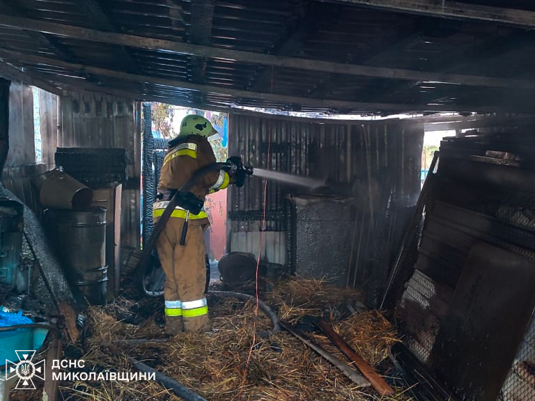 – сьогодні зранку рятувальників сповістили, що у с. Костянтинівка Південноукраїнської громади Вознесенського району зайнялась господарча споруда. Загоряння площею 20 кв. м ліквідували вогнеборці 25 ДПРЧ, завдяки своєчасно вжитим заходам вдалось не допустити перекидання вогню на житловий будинок, літню кухню та гараж.