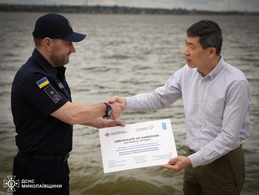 21 червня у Миколаєві Програма розвитку ООН (ПРООН) в Україні за фінансової підтримки Уряду Люксембургу передала ДСНС систему аеророзвідки Mines Eye. Ця сучасна безпілотна технологія, що розроблена в Україні, допоможе робити розмінування швидшим, точнішим і безпечнішим.
