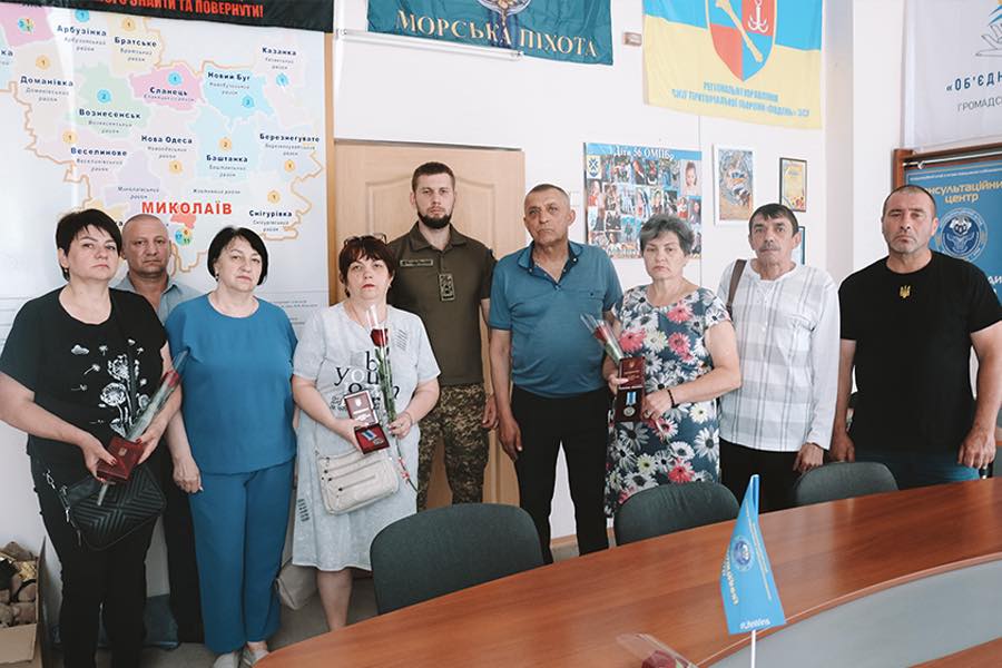 Орден «За мужність» III ступеня та три медалі «За військову службу Україні» були передані родинам загиблих нацгвардійців командуванням 19-го Миколаївського полку охорони громадського порядку Південного ОТО НГУ.