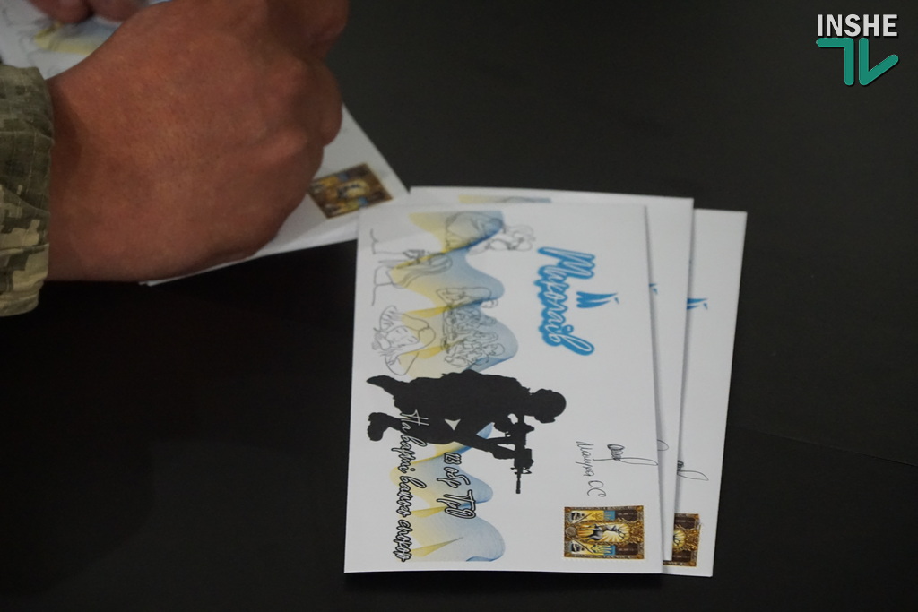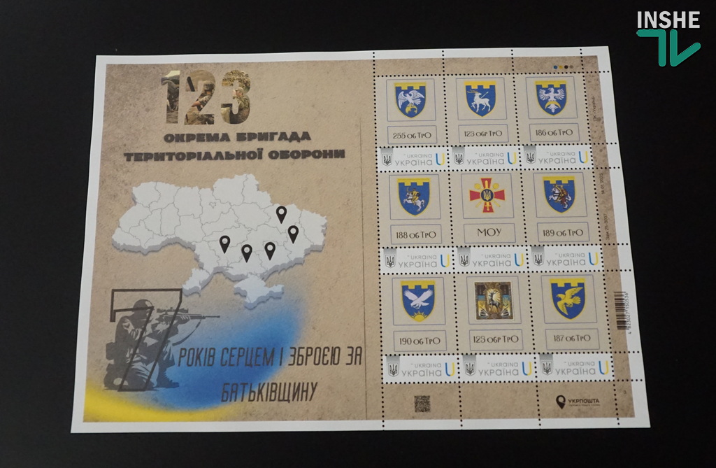 «Марка з символікою 123-ї бригади – для мене це відзначення мужності, чесності, героїзму військовослужбовців, які зараз мужньо виконують свої задачі, – сказав командир бригади Олег Макуха. – Хочу подякувати кожному миколаївцю, голові ОВА, органам місцевого самоврядування за ту підтримку, яку ви нам надаєте».