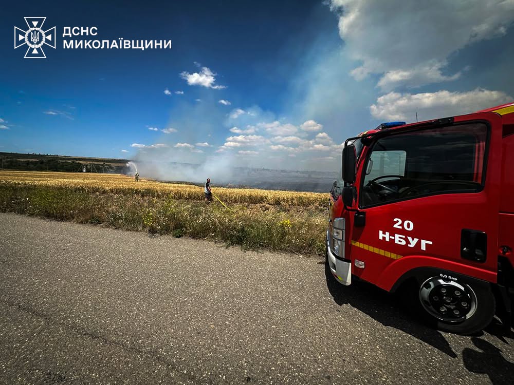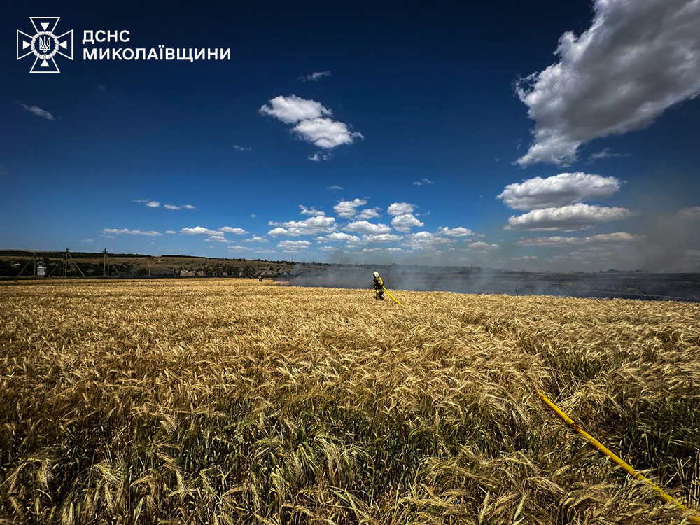 Ще 2 га пшениці вигоріло у с. Лугове Коблівської громади Миколаївського району, 6,5 га ячменю у с. Щасливе Софіївської громади Баштанського району.