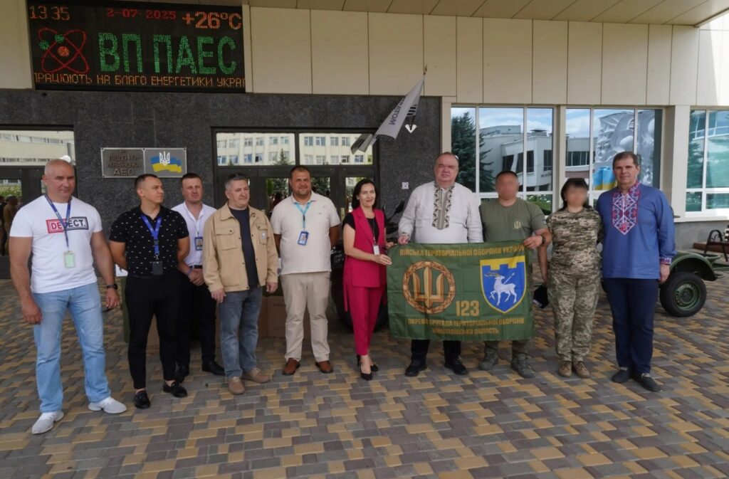 Південноукраїнські атомники разом з керівником АТ «НАЕК «Енергоатом» передали захисникам обладнання та техніку, що має важливе значення для протидії збройній агресії рф. Цього разу на фронт відправили десять найменувань техніки та обладнання.