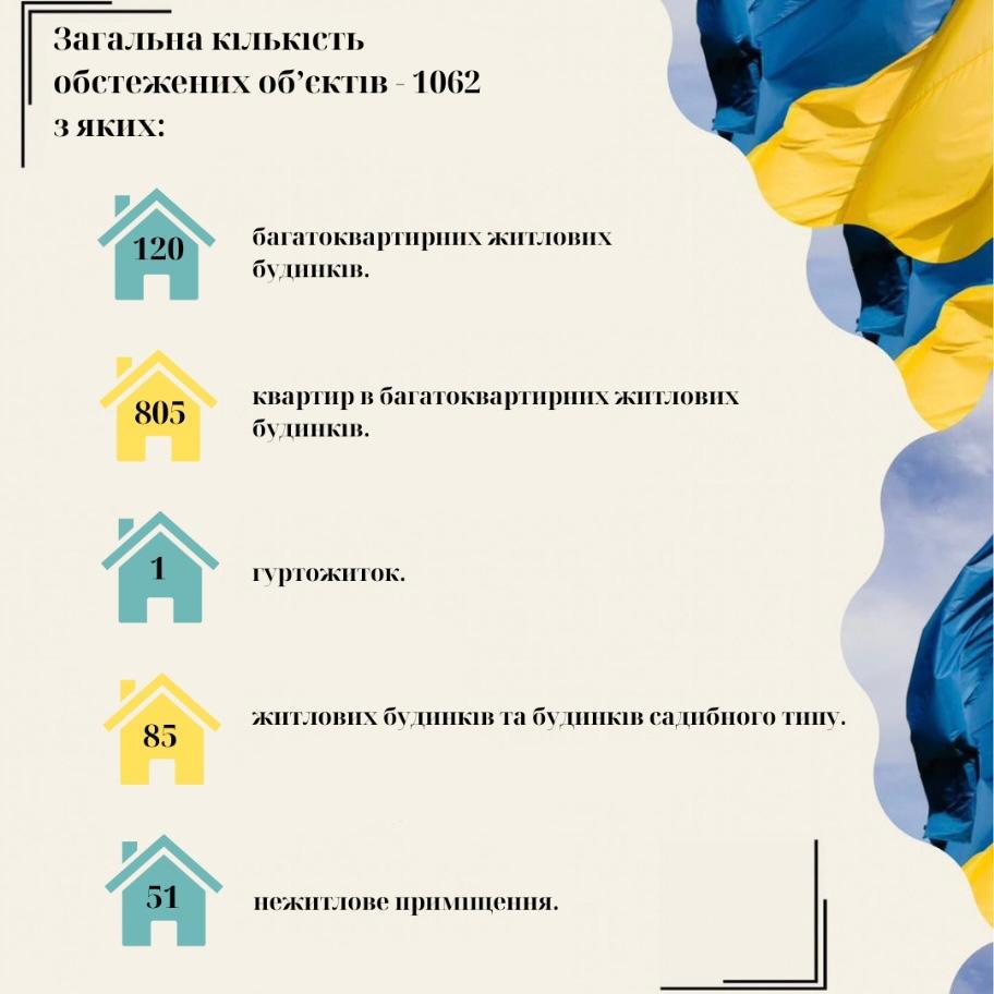 Так, у першій половині 2025 року проведено комісійні обстеження 1062 об’єктів, які зазнали руйнувань або пошкоджень унаслідок ворожих обстрілів.