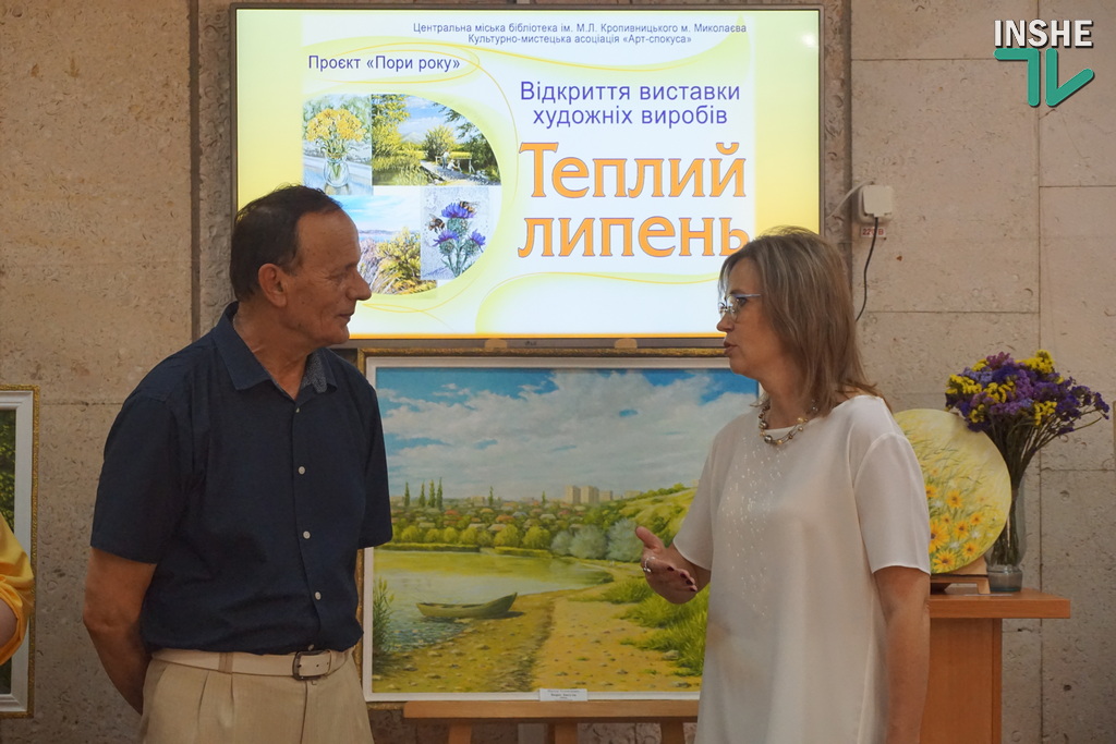 Адже у бібліотеці ім.М.Л.Кропивницького відкрилась виставка «Теплий липень», яка самою гамою кольорів представлених робіт налаштовувала на відпочинок.