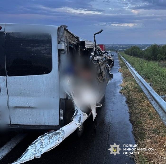Як повідомили в поліції Миколаївської області, внаслідок зіткнення транспортних засобів пасажир автомобіля Renault Trafic загинув на місці події. Ще одного пасажира з тілесними ушкодженнями госпіталізували до медичного закладу.