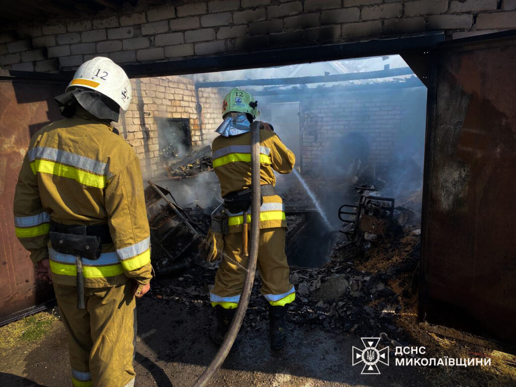 У Вознесенському районі Прибужанівської ТГ у селищі Мартинівське зайнявся гараж на території приватного домоволодіння. Згоріли: мотоцикл MUSSTANG, речі домашнього вжитку, перекриття та покрівля. Пожежу ліквідували площею 28 кв. м.