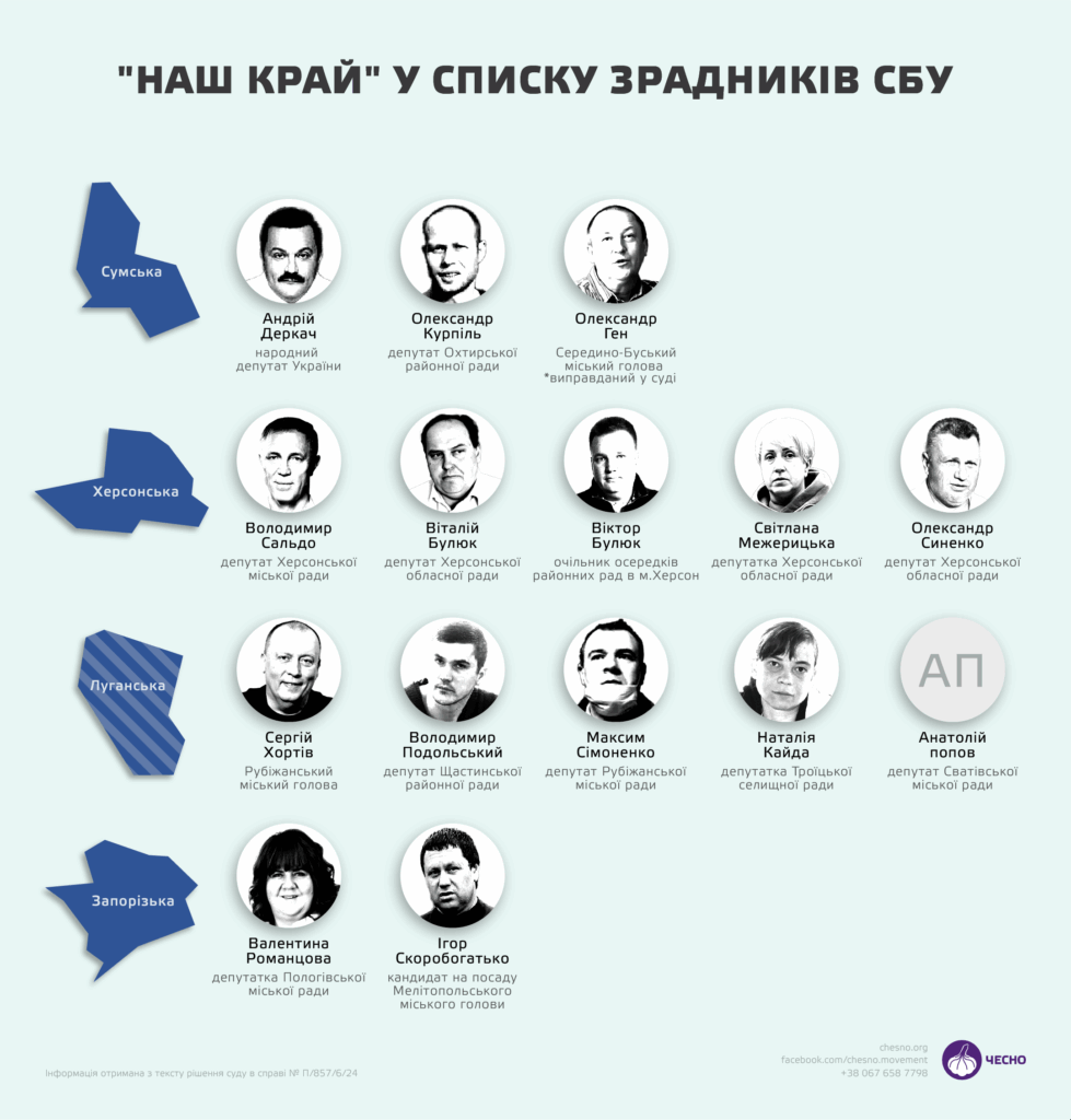 Крім них, “Наш край” мав у своїх лавах і дрібніших прибічників окупантів. Проте в керівництві партії стверджують, що їх не більше, ніж в інших не заборонених політсилах.