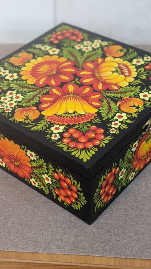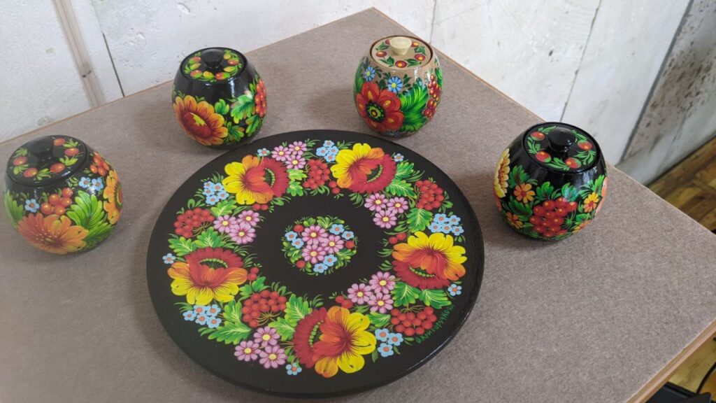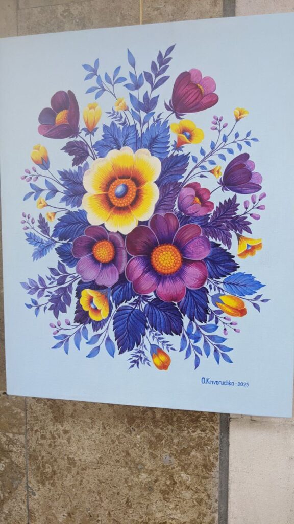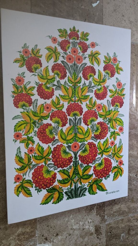 Це особлива подія, адже виставка стала першою персональною для пані Оксани, яка опанувала мистецтво петриківського розпису вже після початку повномасштабного вторгнення. Її творчість стала рятівним островом спокою та сили у неспокійні часи.